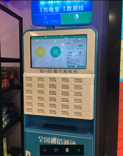 中国でシェアされるのは自転車だけではありません、これはスマートフォン等を充電することができるモバイルバッテリーレンタルの機械です。こちらも基本はAlipay、Wechatpayで決済しますが、最初にデポジットや、使用料を支払って使用するタイプです。