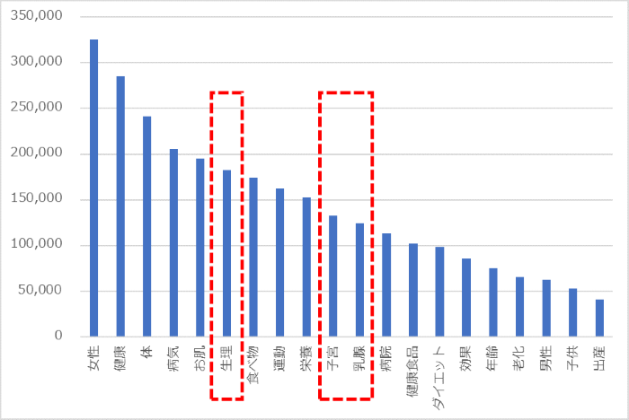 トップに来ているのは「お肌」、「ビタミン」、そして「貧血」でした。