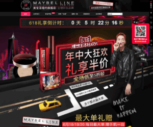 中国で最も人気のある化粧品ブランドのひとつである「Maybelline New York」。2017年の618ではその知名度とT-Mallの旗艦店を使った大型キャンペーンを展開。24時間で1800万元を超える売り上げを記録しています。