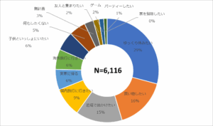 とはいうものの、「近場で」というニーズや国内外への旅行ニーズを合わせると、同じく3割程度が希望として持っており、観光ニーズが皆無というわけではないようです。