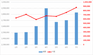 【グラフ】2018年の訪日外国人と、訪日中国人数の推移