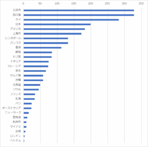 では中国の消費者はどこに行きたがっているのか、同じくクチコミ調査を行ってみました。結果は以下の通り。