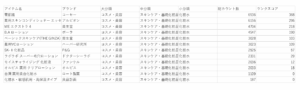 | アイテム名 | ブランド | クチコミ件数 |