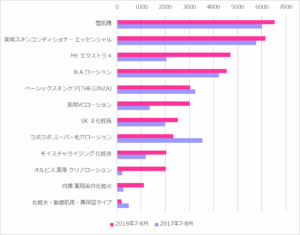 【グラフ】2017年7月‐8月と2018年7月-8月の化粧水「買った」クチコミ件数