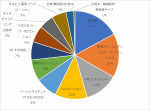 各商品の化粧水クチコミ件数に占める比率は以下の通りになります。