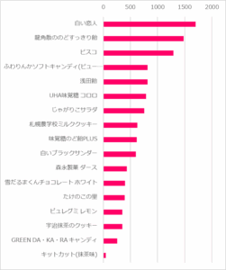 見ての通り、北海道が生んだ銘菓「白い恋人」が1位を獲得。中国での高い知名度、「北海道」という観光ブランド双方が人気を支えています。