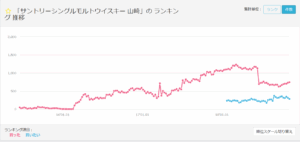 対する「サントリーシングルモルトウイスキー山崎」は急激に人気になり、それが一定期間継続したパターンです。